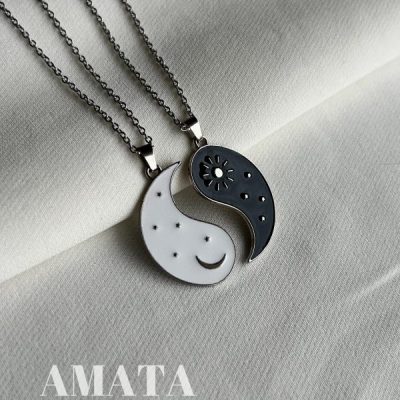 گردنبند یینگ یانگ طرح ماه و خورشید با حک دلخواه