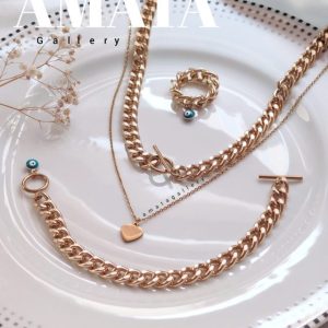 گردنبند دوردیفه زنجیر ونیزی و طنابی با حروف سه بعدی