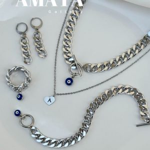 گردنبند لاکت استیل کوچولو با حک اول اسم و زنجیر ماری ظریف