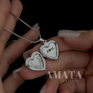 گردنبند ست مگنتی قلبی نقره ای با حک حروف اول اسم