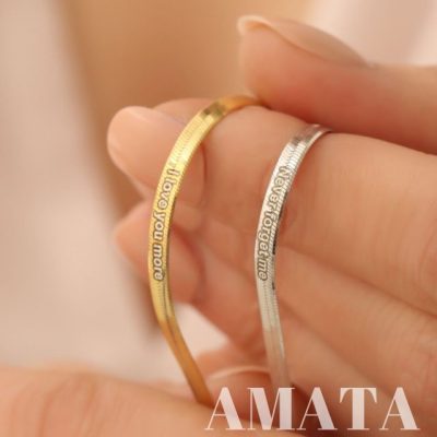- حک اسم و تاریخ: یکی از ویژگیهای منحصر به فرد دستبندهای اماتا گالری این است که امکان حک اسم، تاریخ و حتی پیامهای شخصی بر روی آنها وجود دارد. این ویژگی به شما این امکان را میدهد که دستبندهای خود را به یادگاریهای خاص و شخصی تبدیل کنید.